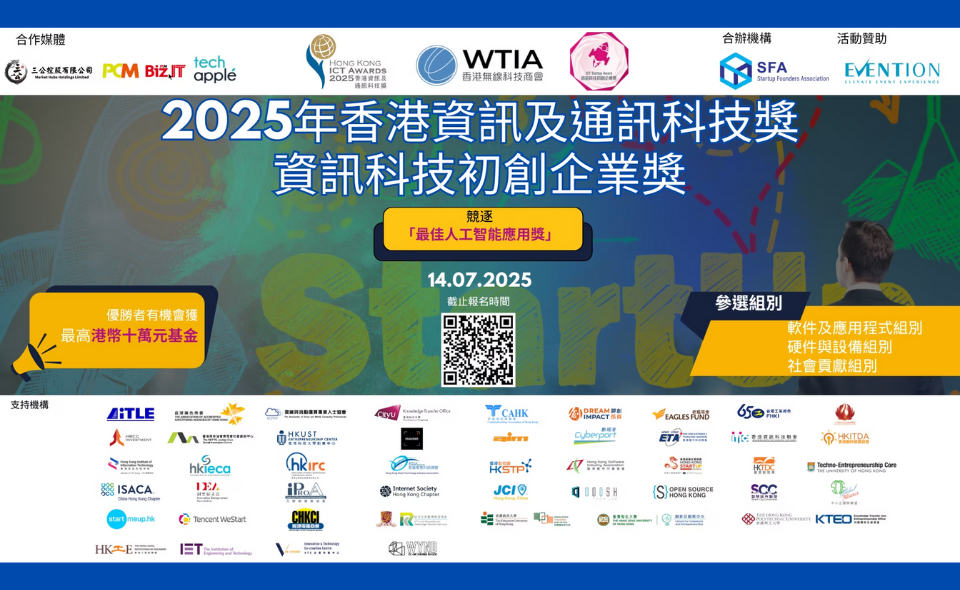 Hong Kong ICT Awards 2025: ICT Startup Award aims at discovering and recognising the outstanding local ICT startup companies which focus on software, hardware and social innovation areas and, reward their distinguished development based on their growth, innovation, creativity, functionality, market potential and performance.