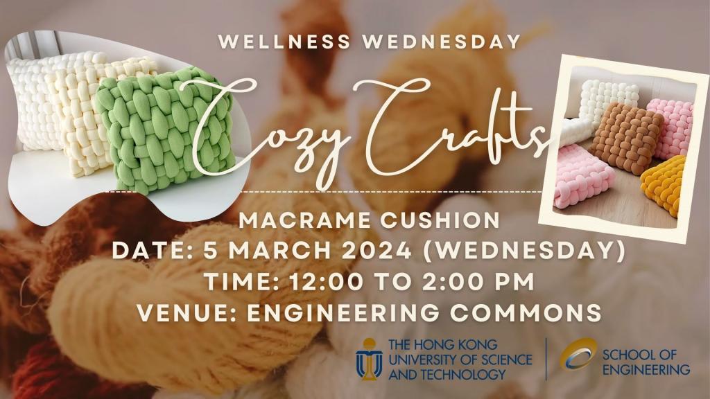 Celebrate Student Wellness Day with our "Macramé Cushion" activity! Join us to create your own macramé cushions, sparking creativity while enjoying a relaxing experience!