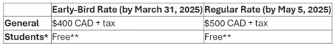 *In order to be eligible for the student fee, registrants will be required to upload either a copy of 1) Proof of Enrollment, or 2) Letter of Support signed by a supervisor at their home institution.