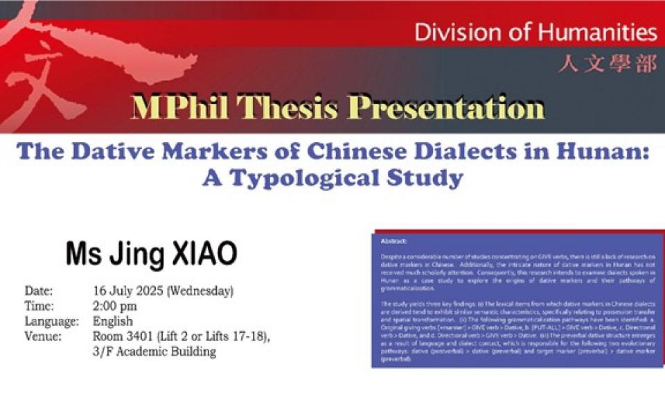 Division of Humanities: MPhil Thesis Presentation - The Dative Markers of Chinese Dialects in Hunan: A Typological Study