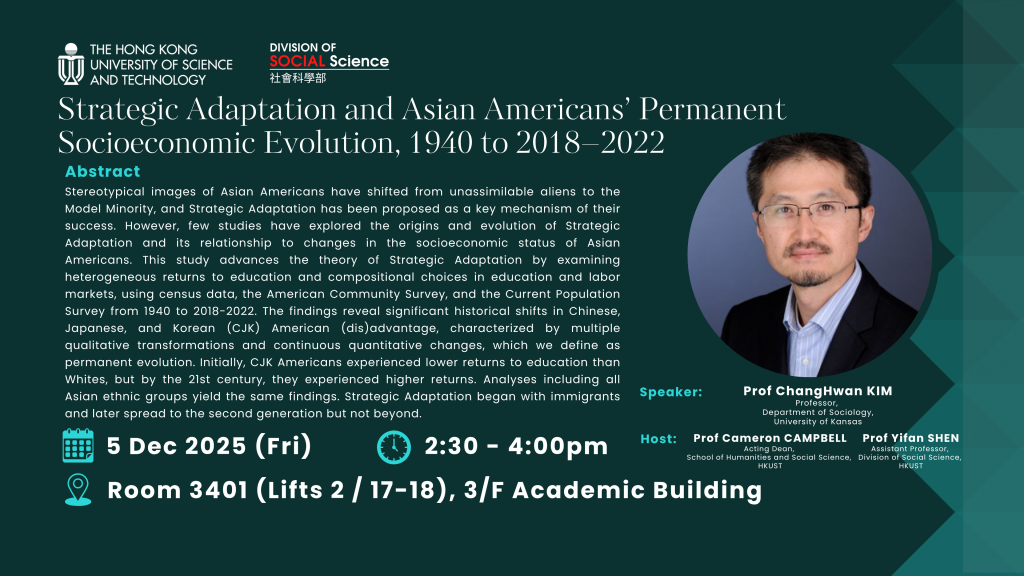 Social Science Seminar - Strategic Adaptation and Asian Americans’ Permanent Socioeconomic Evolution, 1940 to 2018–2022