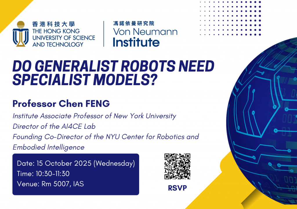 Large Vision-Language Models (VLMs) have demonstrated impressive generalization in the digital realm, but translating this into reliable robot manipulation and navigation remains a fundamental challenge. This talk explores a hybrid path forward: augmenting generalist "brains" with specialist "nervous systems." I will first present two foundation model efforts: SeeDo, which leverages VLMs to interpret long-horizon human videos and generate executable task plans, and INT-ACT, an evaluation suite that diagnoses a critical intention-to-execution gap in current Vision-Language-Action (VLA) systems. This gap reveals a key generalization boundary: robust task understanding does not guarantee robust physical control. To bridge this divide, I will introduce specialist models that provide two missing ingredients: fine-grained physical understanding and acquiring data for learning at scale. EgoPAT3Dv2 grounds robot action by learning 3D human intention forecasting from real-world egocentric videos. To address the data-scaling challenge, RAP employs a real-to-sim-to-real paradigm, while CityWalker explores web-scale video to learn robust, specialized skills. I will conclude by drawing analogies from the only known generalist agents — ourselves — to offer my answer to the question posed in the title.