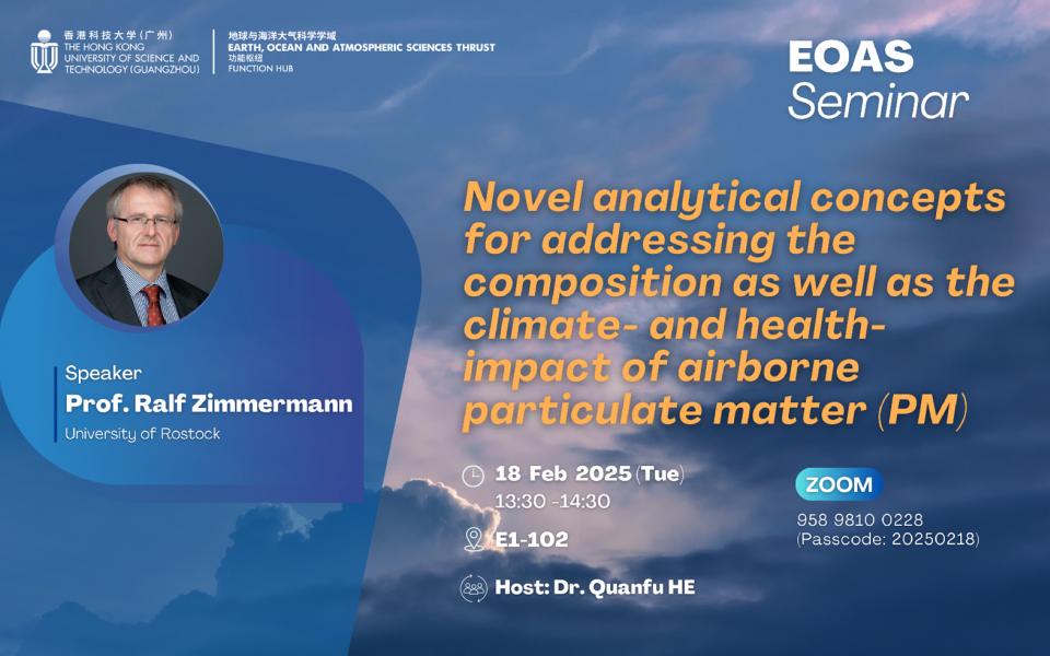 Public Research Seminar by Earth, Ocean and Atmospheric Sciences (EOAS) Thrust, HKUST (GZ) - Novel analytical concepts for addressing the composition as well as the climate- and health-impact of airborne particulate matter (PM)