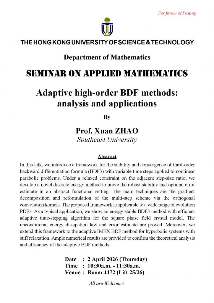 Seminar on Applied Mathematics - Adaptive high-order BDF methods: analysis and applications