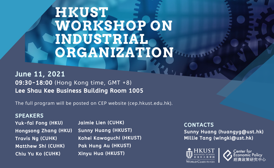 The Center for Economic Policy is honored to host the 2021 HKUST Workshop on Industrial Organization. We are extremely lucky that ten distinguished IO scholars have kindly agreed to present their research at this year's IO Workshop.