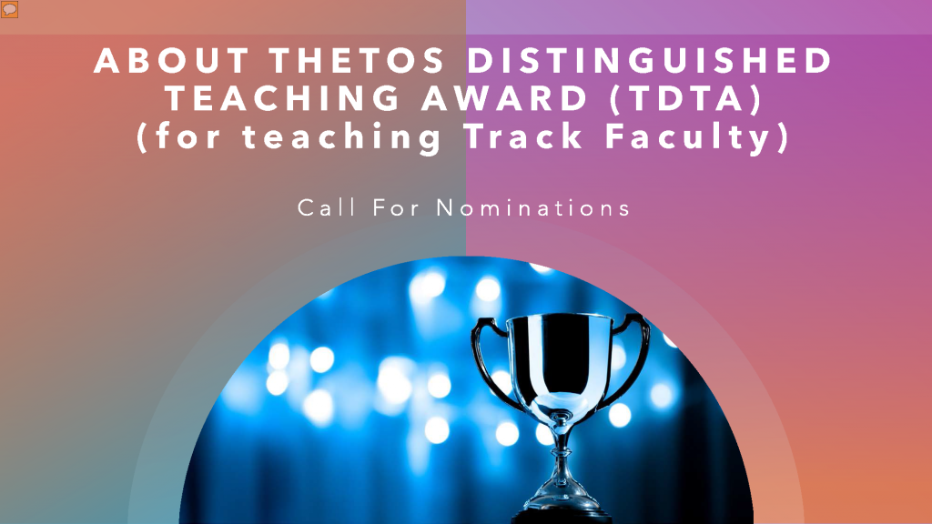 [Call for Nominations] 2024 Thetos Distinguished Teaching Award (for teaching track faculty)