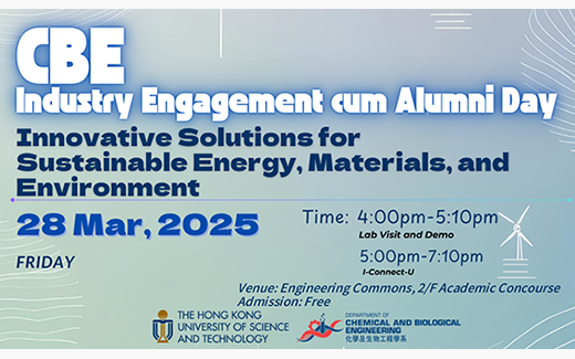 The Department of Chemical and Biological Engineering (CBE) warmly invites all of our students, faculty members, and alumni, from both CBE and the School of Engineering (SENG), to a special Friday Get-Together featuring the Industry-Connect-University Fireside Chat. This event presents a fantastic opportunity to network with industry leaders, faculty, alumni, and students, exploring innovative topics and solutions for sustainable energy, materials, and the environment that will shape our future.