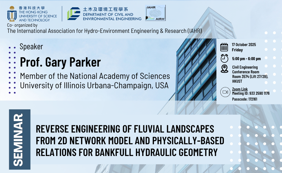 Civil Engineering Departmental Seminar - Reverse engineering of fluvial landscapes from 2D network model and physically-based relations for bankfull hydraulic geometry
