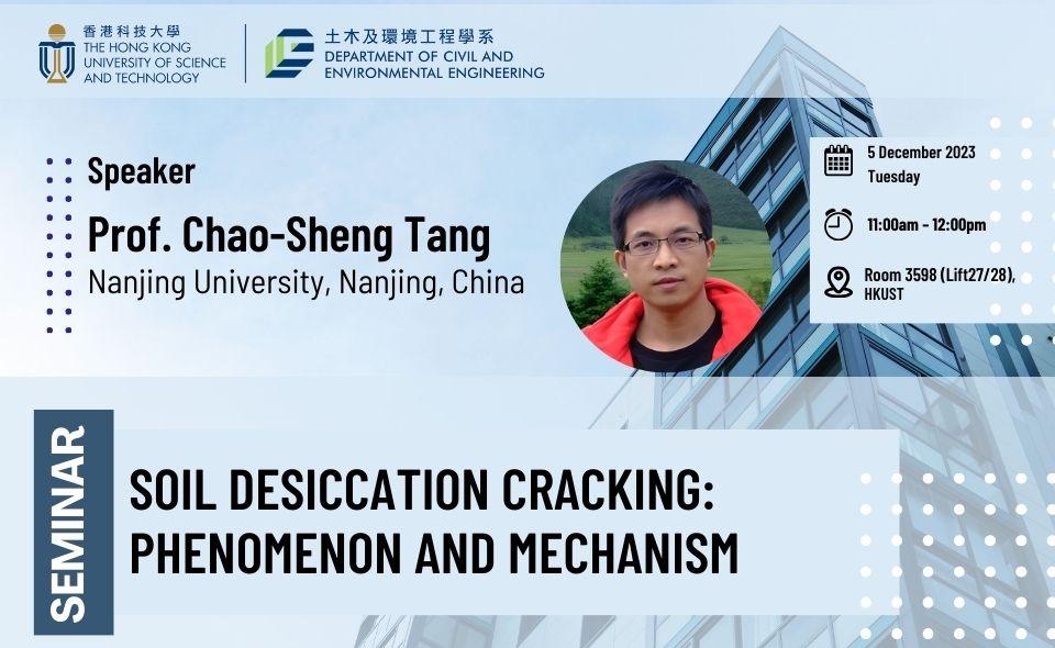 The formation of desiccation cracks on soil surface due to loss of water is a common natural phenomenon, which can significantly affect the soil performance in various geotechnical, agricultural and environmental applications. In this seminar, Prof. Tang will share insights from his research on the phenomena and mechanisms behind soil desiccation cracking. The presentation will commence by outlining the experimental methods, monitoring tools, and analytical approaches employed in studying soil cracks. The subsequent segment of the presentation will explore the evolution patterns and formation mechanisms of soil cracking. The emphasis will be put on the interconnected processes of evaporation, shrinkage, and cracking, with a focus on the impact of suction and tensile strength on crack formation. The presentation will be concluded by showcasing a series of innovative technologies devised by Prof. Tang's research group for the prevention and control of soil cracking, including fiber reinforcement, eco-polymer crack curing, and microbial mineralization cracking control techniques. Prof. Tang will provide insights into the practical application and widespread utilization of these techniques in various engineering projects.