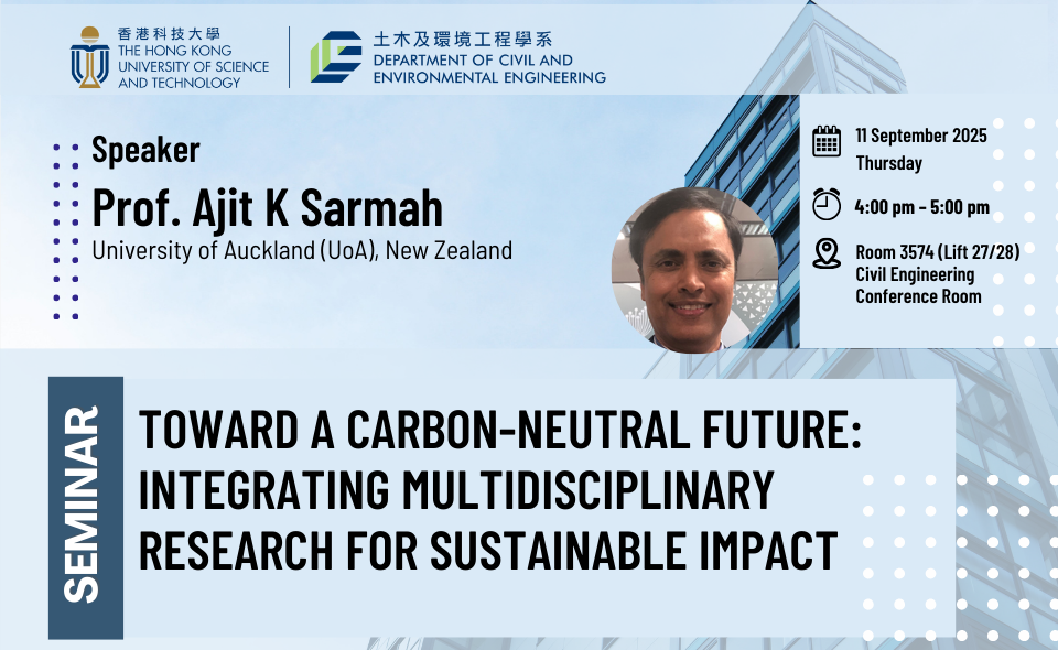 Civil Engineering Departmental Seminar - Toward a Carbon-Neutral Future: Integrating Multidisciplinary Research for Sustainable Impact