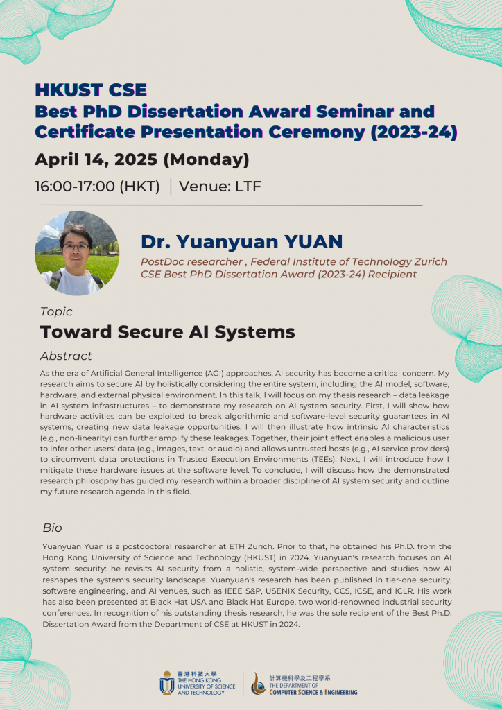 CSE Best PhD Dissertation Award Seminar - Toward Secure AI Systems
