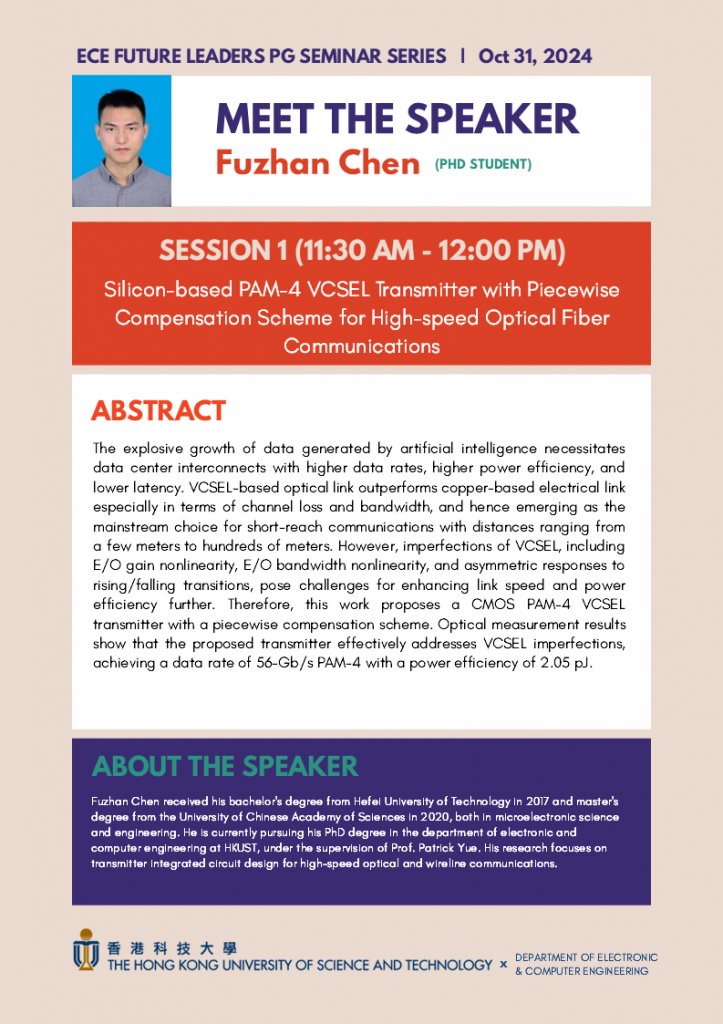 Session 1: Silicon-based PAM-4 VCSEL Transmitter with Piecewise Compensation Scheme for High-speed Optical Fiber Communications