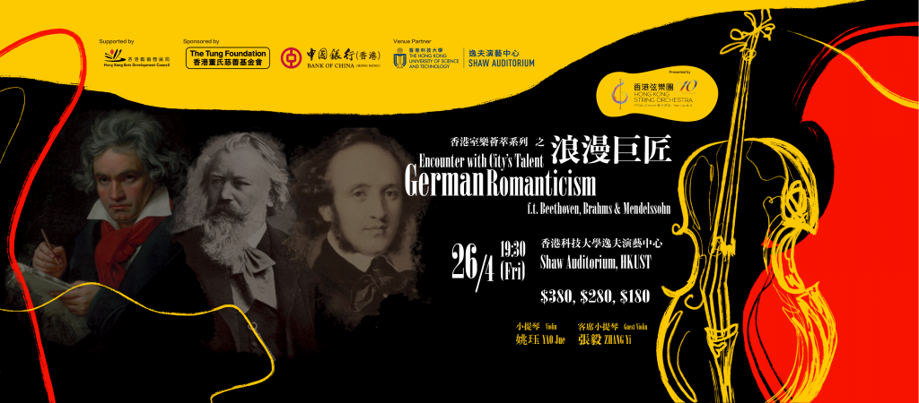 Beethoven, Brahms, and Mendelssohn, not only were representative composers of the Romantic period, but also outstanding German composers. In the upcoming concert, the Hong Kong String Orchestra will collaborate with Zhang Yi, a nationally acclaimed violinist from China, to present a splendid performance in the form of chamber music.