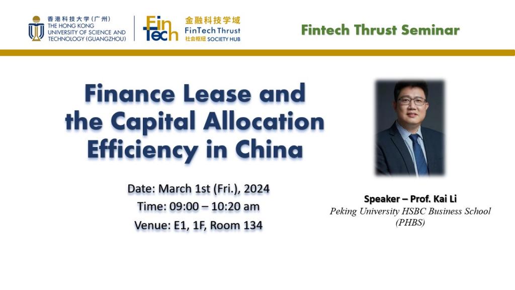 FINTECH THRUST SEMINAR |  Finance Lease and the Capital Allocation Efficiency in China