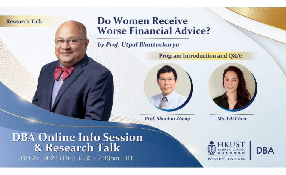 HKUST DBA Program - Online Info Session & Research Talk on “Do Women Receive Worse Financial Advice” by Prof. Utpal Bhattacharya