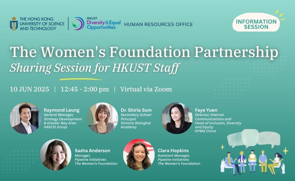 Diversity and Equal Opportunities Unit jointly with Human Resources Office are proud to update you that HKUST becomes the first university in Hong Kong to join hands with The Women’s Foundation (TWF) as a 2025/26 Advocate Partner, a big step forward in our commitment to nurturing inclusive leaders and championing diversity, equity and inclusion on campus and beyond.