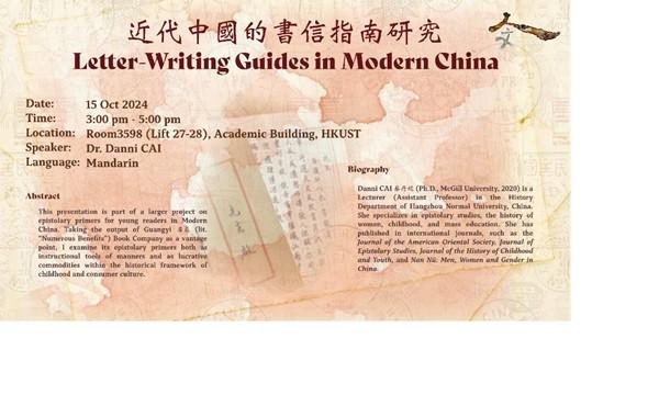 HUMA Seminar - 近代中國的書信指南研究 Letter-Writing Guides in Modern China