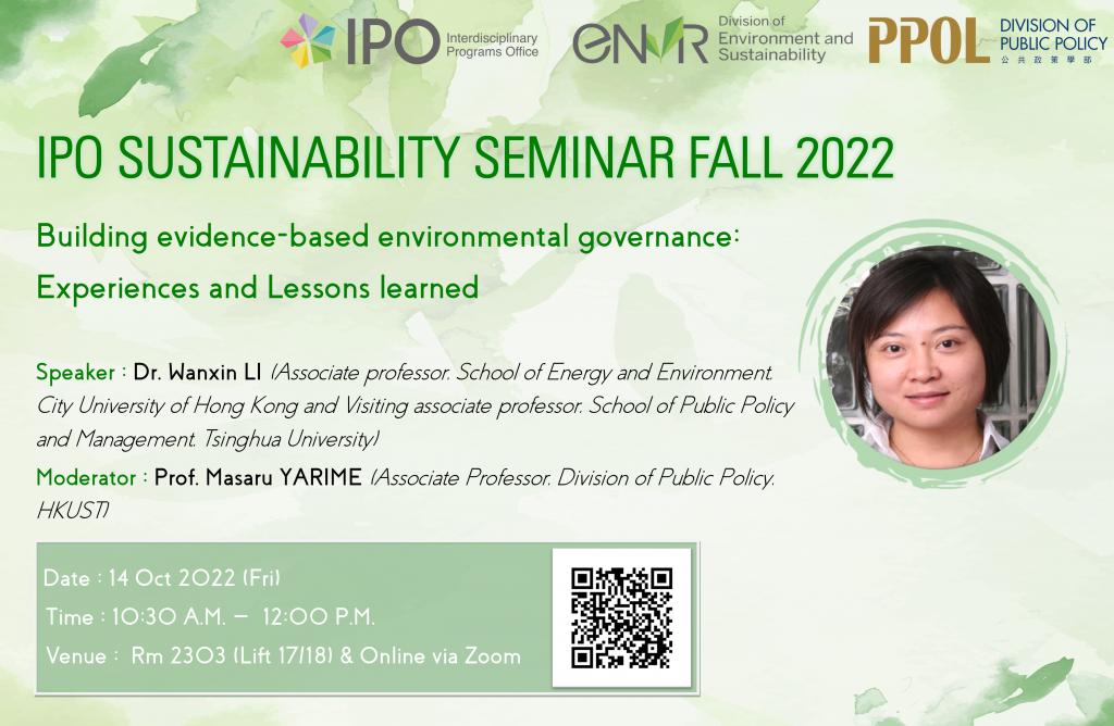 Interdisciplinary Program Office (IPO) Sustainability Seminar Series Fall 2022 - Building evidence-based environmental governance: experiences and lessons learned