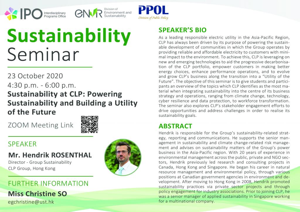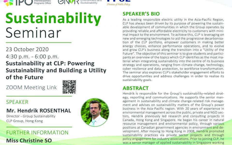 Interdisciplinary Program Office (IPO) Sustainability Seminar Series - “Sustainability at CLP: Powering Sustainability and Building a Utility of the Future”