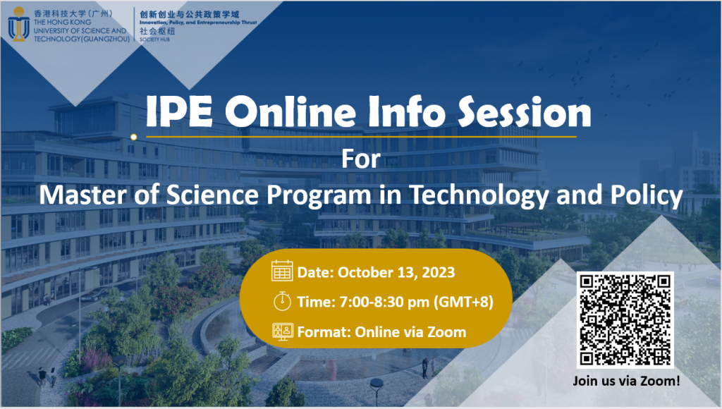 HKUST (GZ) IPE Thrust is kickstarting the first online info session about our new taught postgraduate program (MSc (TP)).