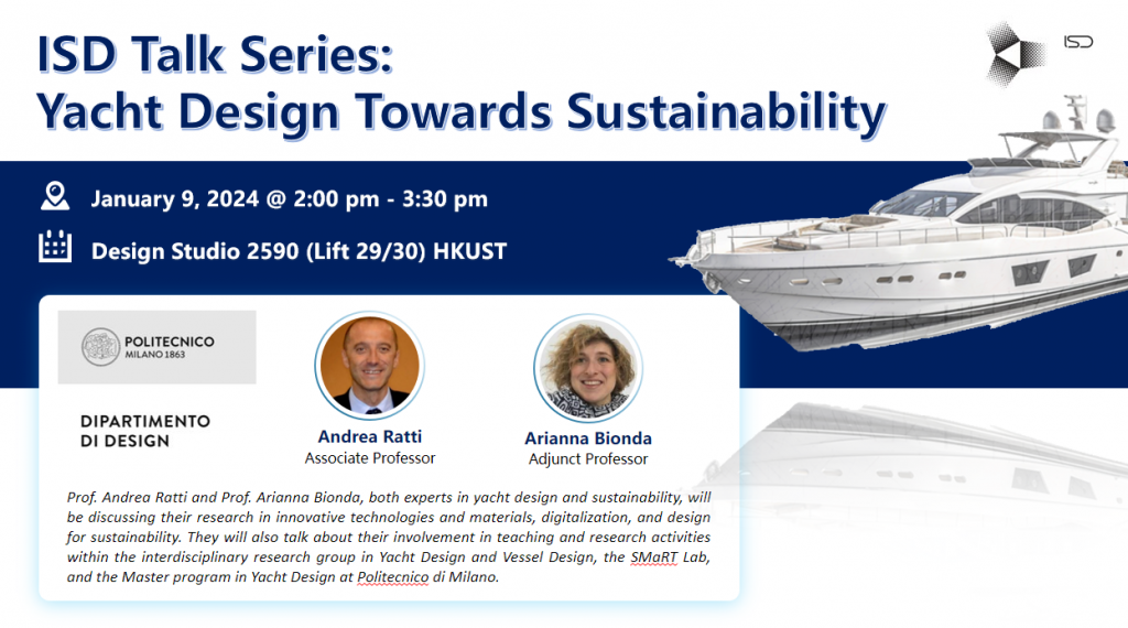 Prof. Andrea Ratti and Prof. Arianna Bionda, both experts in yacht design and sustainability, will be discussing their research in innovative technologies and materials, digitalization, and design for sustainability. They will also talk about their involvement in teaching and research activities within the interdisciplinary research group in Yacht Design and Vessel Design, the SMaRT Lab, and the Master program in Yacht Design at Politecnico di Milano.