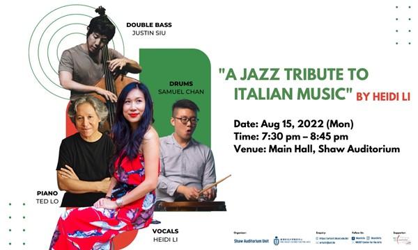 From regional folk songs in various Italian dialects to songs by pop icons such as Mina and Battisti...Hong Kong-born, Italy-trained jazz vocalist Heidi Li will bring you on a journey to Italy through music. This performance will feature Ted Lo, Hong Kong's “godfather of jazz” on the piano, together with two rising jazz stars: bassist Justin Siu and drummer Samuel Chan. Videos will be projected to immerse audience into Italian scenery during the musical journey.