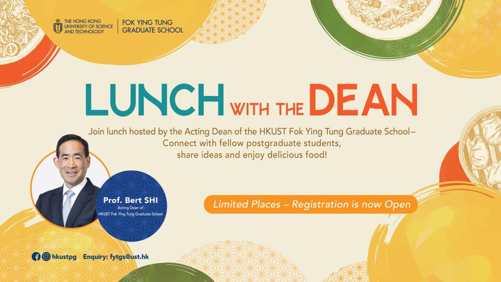 Join the lunch hosted by the Acting Dean of the HKUST Fok Ying Tung Graduate School - Connect with fellow postgraduate students, share ideas and enjoy delicious food!