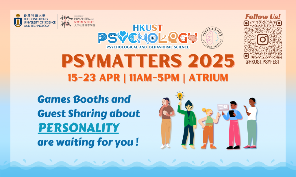 This event features a series of activities, including interactive game booths, guest sharing on personality and career, and photo-taking booths. You can try the personality test and enjoy the complimentary snacks and souvenirs at our counters. Come and explore psychology with us!