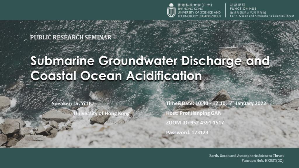 Public Research Seminar by Earth, Ocean and Atmospheric Sciences (EOAS) Thrust, HKUST (GZ) - Submarine Groundwater Discharge and Coastal Ocean Acidification