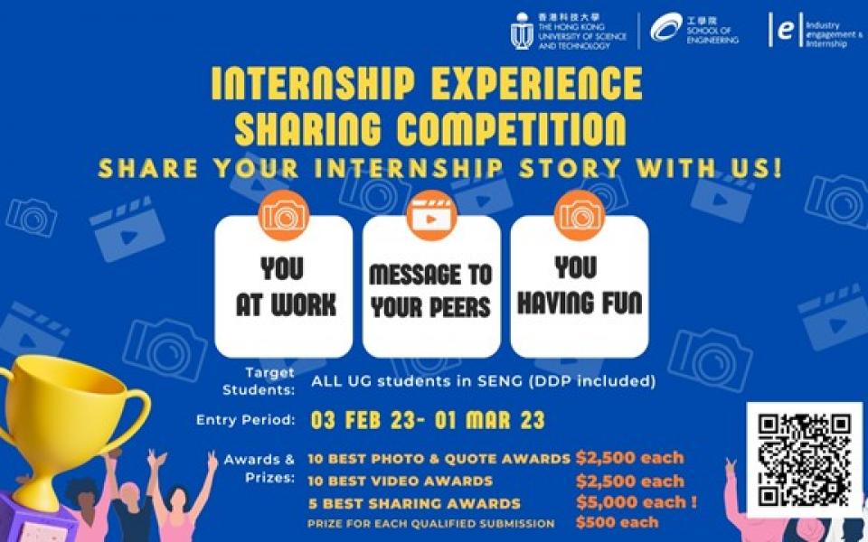 SENG Internship Experience Sharing Competition will be back in Spring 2023.  ALL UG students in SENG (DDP included) can join this competition featuring My Internship Story!