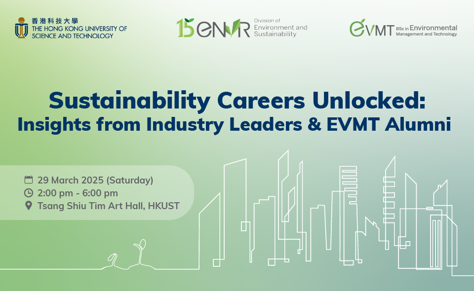 Join us for an enlightening career forum that delves into the future of sustainability, featuring valuable insights from esteemed industry leaders and distinguished alumni of the Environmental Management and Technology (EVMT) program. Launched in 2010, EVMT is the FIRST program of its kind in Hong Kong, uniquely integrating environment and business to cultivate the next generation of sustainability professionals.