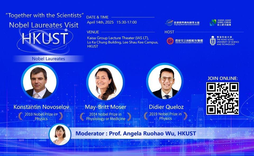 Three Nobel Laureates will visit HKUST to participate in the "Together with the Scientists" thematic event. They will share their scientific research findings, fundamental research methodologies, and the spirit of perseverance with guests, faculties and students, aiming to ignite their curiosity about the wonders of science, instill the courage to innovate and explore future scientific endeavors, and nurture the talents essential for the nation's future.