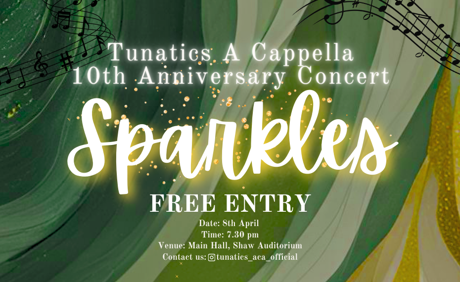 Join a spectacular celebration concert as Tunatics A Cappella marks its 10th anniversary! Immerse yourself in an unforgettable evening filled with a diverse variety of a cappella music. Their current members will take you on a musical journey while special alumni reunite to share the stage and bring back cherished memories. Additionally, the amazing beatbox session will elevate the energy of the night.