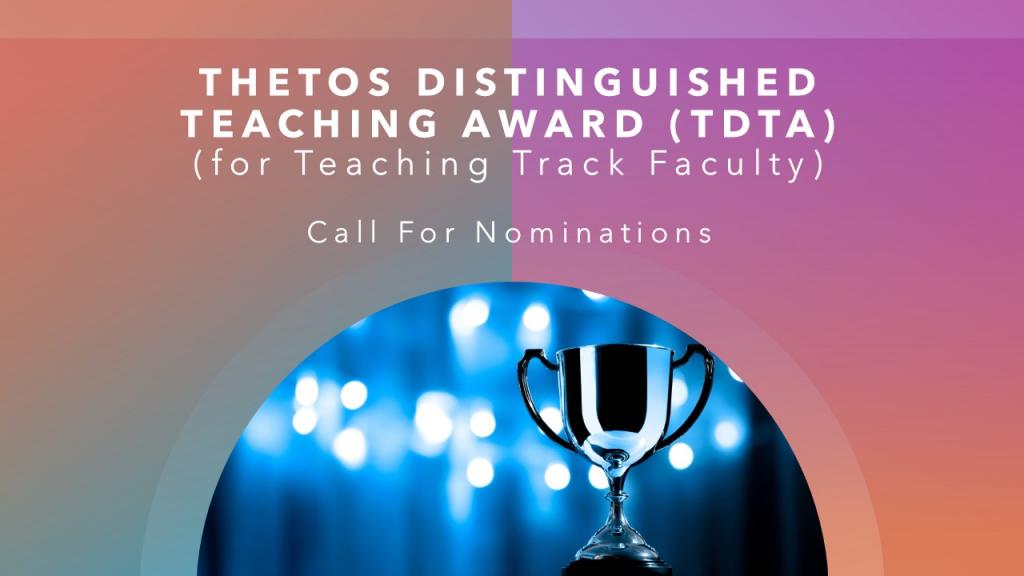 [Call for Nominations] 2025 Thetos Distinguished Teaching Award (for teaching track faculty)