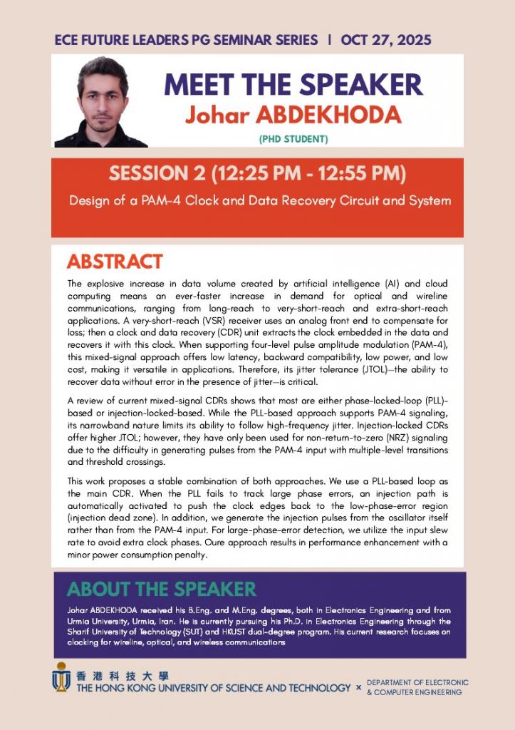 Speaker: Johar ABDEKHODA, PhD (ECE), HKUST