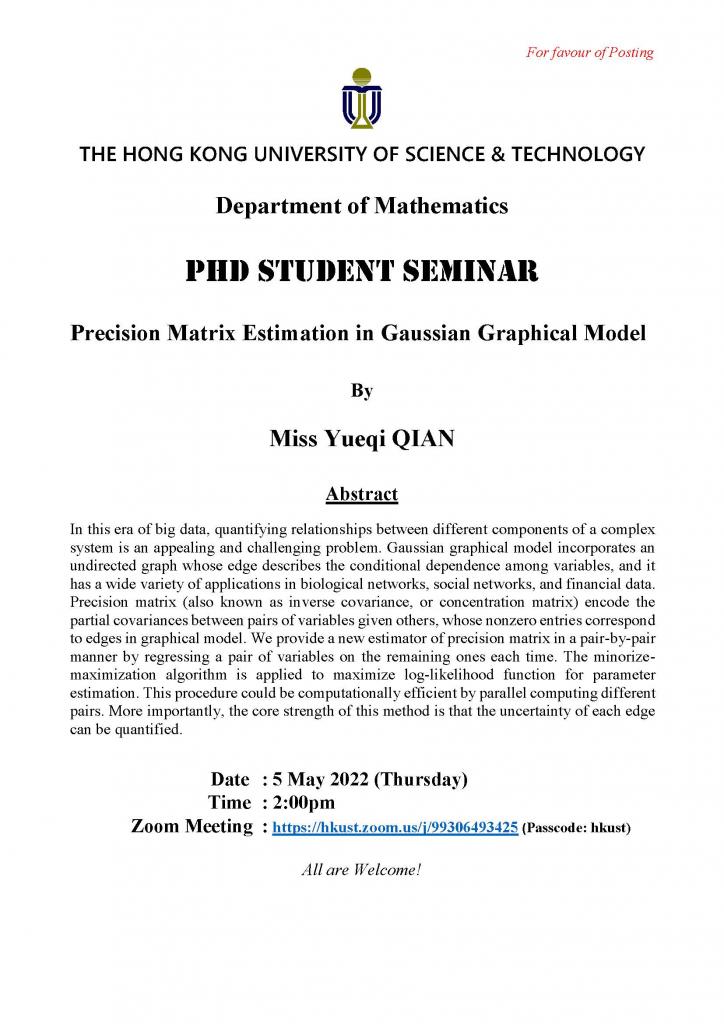 Department of Mathematics - PhD Student Seminar - Precision Matrix Estimation in Gaussian Graphical Model