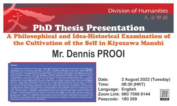 Division of Humanities PhD Thesis Presentation - A Philosophical and Idea-Historical Examination of the Cultivation of the Self in Kiyozawa Manshi