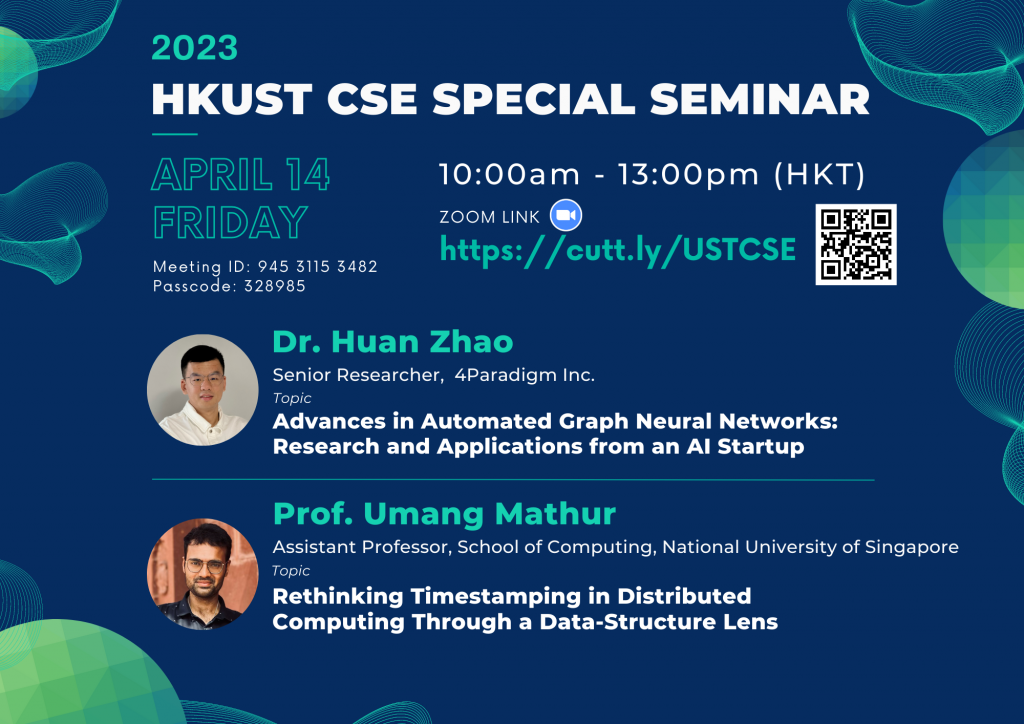 HKUST Computer Science and Engineering Special Online Seminar - Topic for Seminar 1: Advances in Automated Graph Neural Networks: Research and Applications from an AI Startup Topic for Seminar 2: Rethinking Timestamping in Distributed Computing Through a Data-Structure Lens