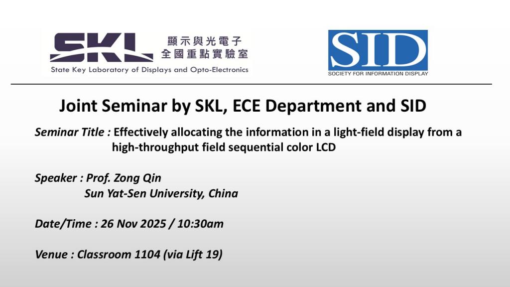 Joint SKL, SID and ECE Seminar - Effectively allocating the information in a light-field display from a high-throughput field sequential color LCD