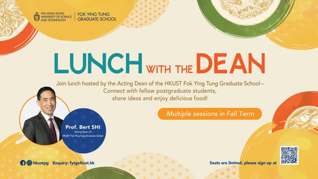 Join lunch hosted by the Acting Dean of the HKUST Fok Ying Tung Graduate School - Connect with fellow postgraduate students, share ideas and enjoy delicious food!