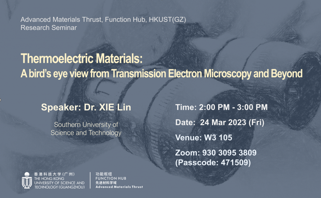 Public Research Seminar by Advanced Materials Thrust, Function Hub,HKUST(GZ) - Thermoelectric Materials: A bird’s eye view from Transmission Electron Microscopy and Beyond
