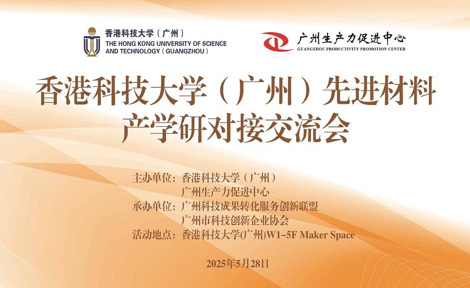 为充分发挥香港科技大学(广州)先进材料领域顶尖科技人才及技术成果资源优势,提升粤港澳大湾区先进材料领域产学研用协同攻关水平,推动产业链、人才链、创新链、资金链深度融合。香港科技大学(广州)与广州生产力促进中心将于 2025 年 5 月 28 日(周三)联合举办香港科技大学(广州)先进材料产学研对接交流会。本次交流会将围绕功能性高分子材料、超材料、光电材料、量子材料、材料信息学等前沿方向,邀请港科大(广州)先进材料领域专家团队与粤港澳大湾区新材料产业链相关企事业单位、投融资机构等进行精准对接。活动形式丰富多样,包括产学研合作情况介绍、红鸟研究硕士项目情况介绍、专家团队科研成果和产业应用及合作意向介绍、先进材料科研平台参观以及产学研金、人才对接交流及咨询等环节。