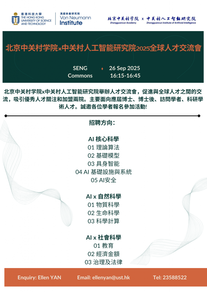 北京中关村学院x中关村人工智能研究院將於2025年9月26日舉辦人才交流會,促進與全球人才之間的交流,吸引優秀人才關注和加盟兩院。主要面向應屆博士、博士後、訪問學者、科研學術人才。誠邀各位學者報名參加活動!