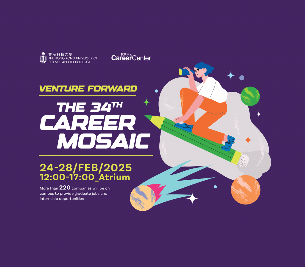 Organized by Career Center, Career Mosaic is a campus-wide weeklong job fair where you can meet your prospective employers face to face. Come join us and learn about the graduate jobs and internship opportunities from more than 220 companies!