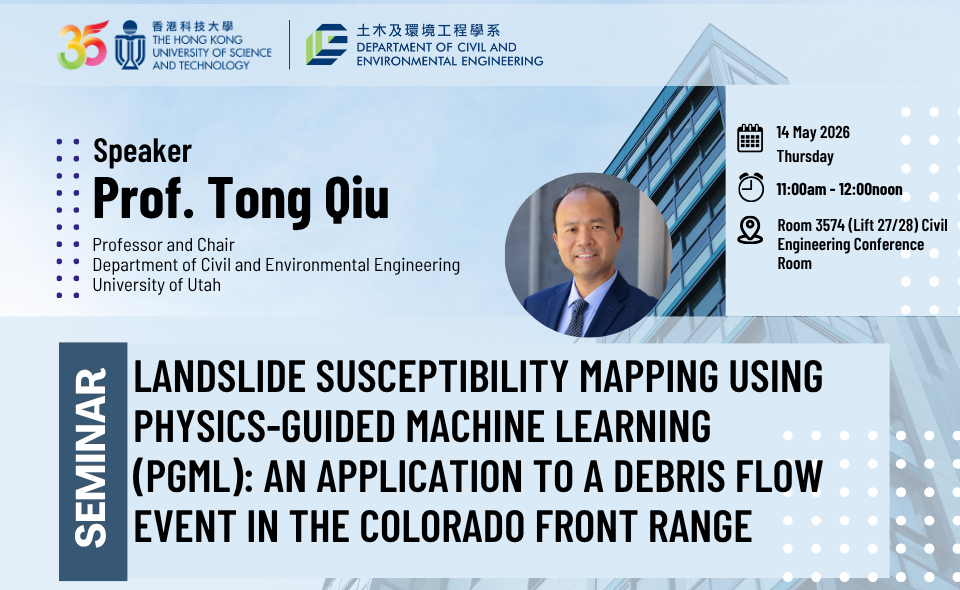 Civil Engineering Departmental Seminar - Landslide Susceptibility Mapping using Physics-Guided Machine Learning (PGML): An Application to A Debris Flow Event in the Colorado Front Range