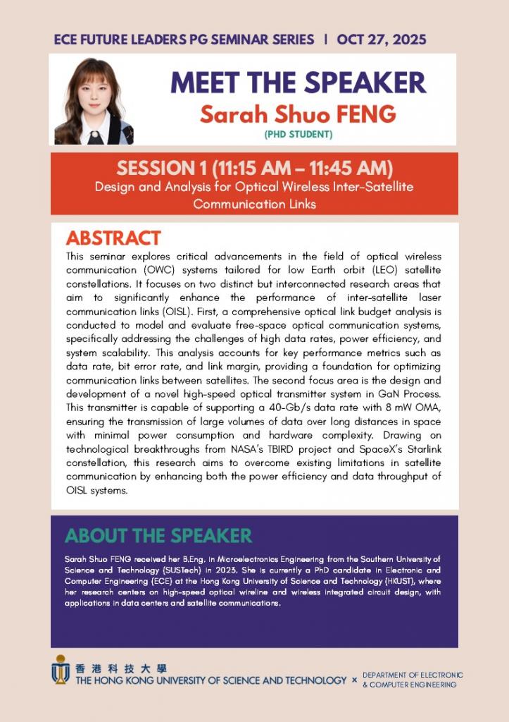 Speaker: Sarah Shuo FENG, PhD (ECE), HKUST