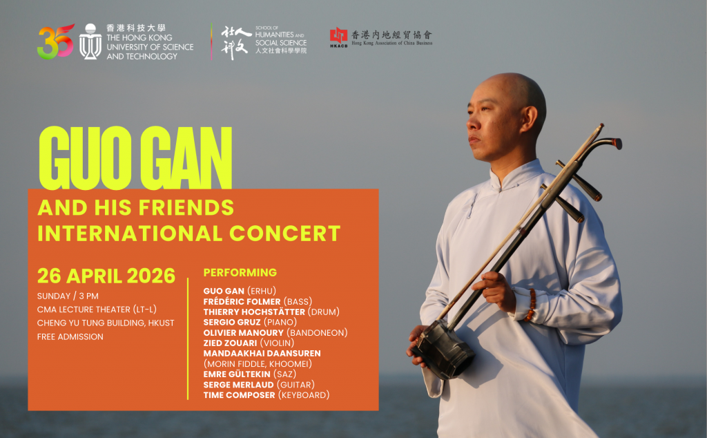 After the success of his debut concert in 2023, Erhu Master Guo Gan returns to HKUST with an ensemble of renowned international musicians who are his long-time collaborators to present a wonderful program of music from diverse origins, demonstrating how Chinese and foreign instruments and musical styles can be blended into beautiful harmony. Whereas Master Guo’s previous concert at HKUST focused on traditional Chinese instruments and music, this one blends the East and the West, covering jazz, classical, rock, Chinese, Turkish, Arabic, Mongolian and tango music to create a musical dialogue between cultures and traditions.