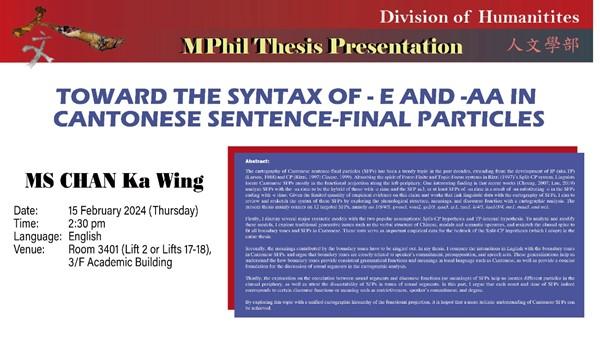 HUMA MPhil Thesis Presentation - Toward The Syntax of -E and -AA in Cantonese Sentence-Final Particles