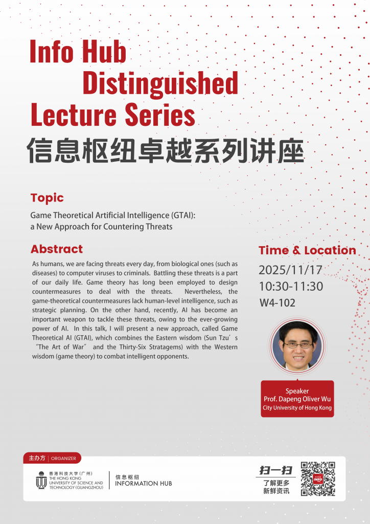 Information Hub Distinguished Lecture Series - Game Theoretical Artificial Intelligence (GTAI): A New Approach for Countering Threats