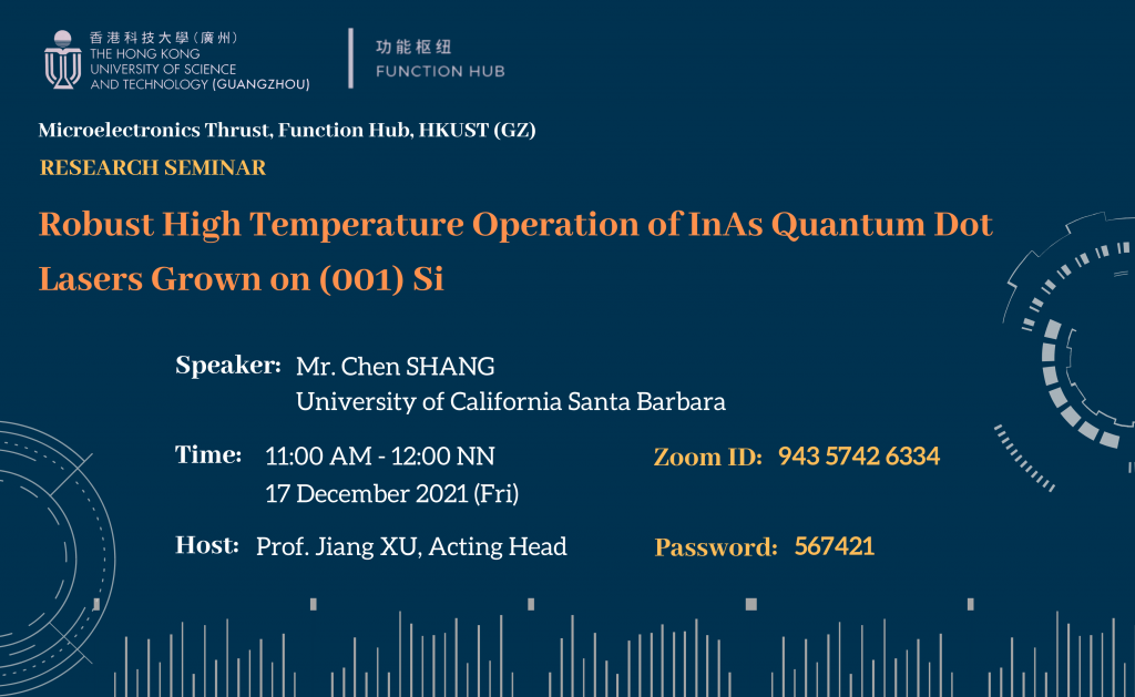 Epitaxially grown quantum dot (QD) lasers are emerging as an economical approach to obtain on-chip light sources. Thanks to the three-dimensional confinement of carriers, QDs show greatly improved tolerance to defects and promise other advantages such as low transparency current density, high temperature tolerance, isolator-free operation, and enhanced four-wave-mixing. These material properties distinguish them from traditional III–V/Si quantum wells (QWs) and have spawned intense interest to explore a full set of photonic integration using epitaxial growth technology. My focus of this seminar would be on the breakthroughs in long lifetime at elevated temperatures. Threading dislocations are significantly reduced to the level of 1×106 cm-2 via a novel asymmetric step-graded filter. Misfit dislocations are efficiently blocked from the QD region through well-engineered trapping layers. A record-breaking extrapolated lifetime of more than a million hours has been achieved at 80 °C, forecasting that device reliability is now entering the realm of commercial relevance and a monolithically integrated light source is finally on the horizon. Potential issues with the low defect structure on the manufacturability of the large scale wafers will be briefly discussed as well.